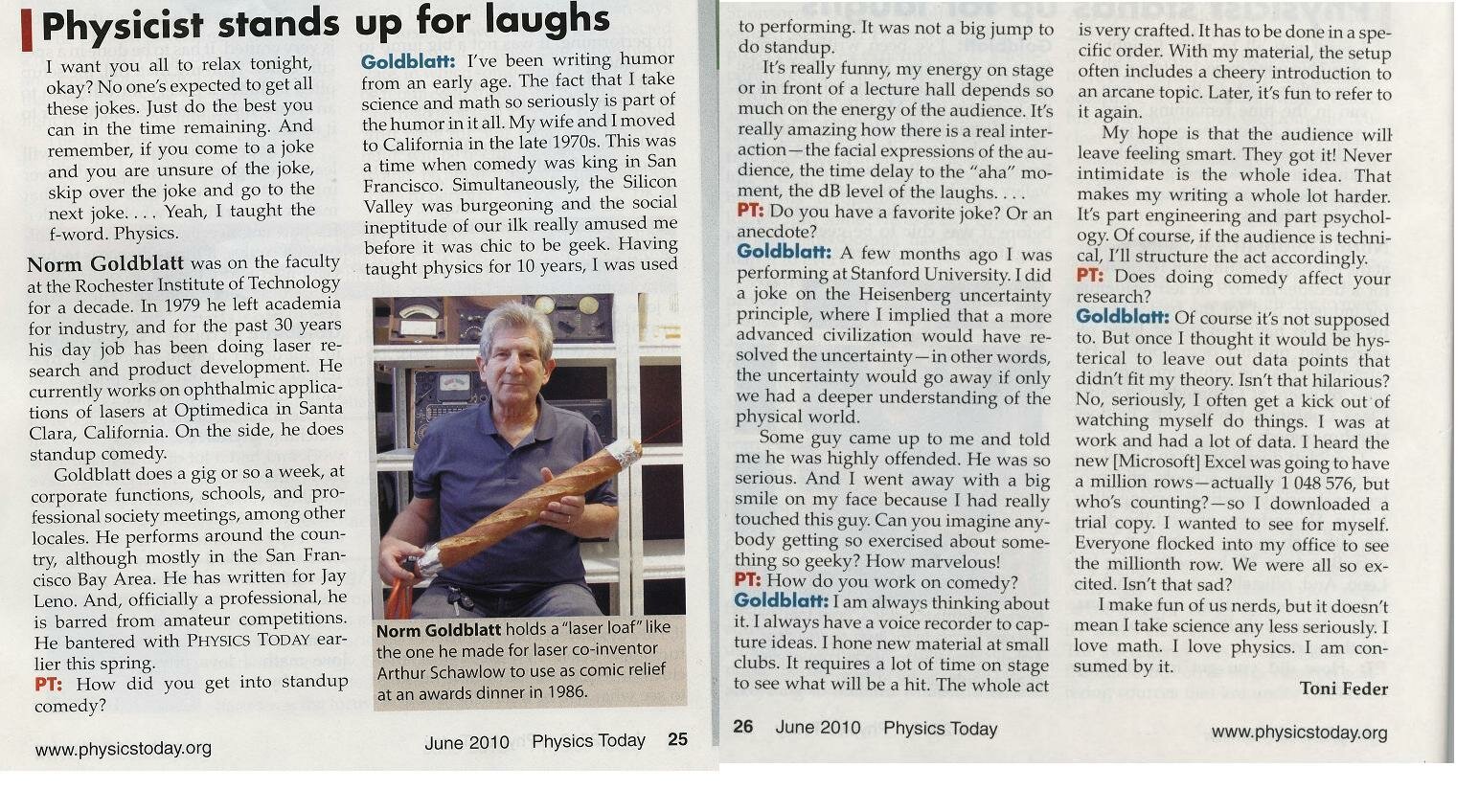 Norm performs all over the San Francisco Bay Area at nightclubs, comedy clubs, corporate events, private parties and fundraisers. His humor touches on technology, science, politics, and the human condition.? His quips were quoted regularly by the late great Herb Caen in the San Francisco Chronicle and his jokes are heard on the Tonight Show with Jay Leno.? You can spot his 'wisdom'? in SF Chron. Leah Garchik's column as well as the Bruce Bellingham's column in the SF Northside Magazine.North SF Bulletin and the prestigious Journal of Irreproducible Results? Born with Asociotechnophelia, he redirected the ravaging effects of this disease toward developing skills as a physicist, teacher, engineer and entertainer. Norm's philosophy is that everyone wants to feel smart, and his material will make you feel that way. Let him exercise your right AND left brain. You'll be surprised how much you really learned at school. He has two head positions- towards the stars and towards his shoes but get him onstage and power him with a spotlight and his laser gaze will entrance you?